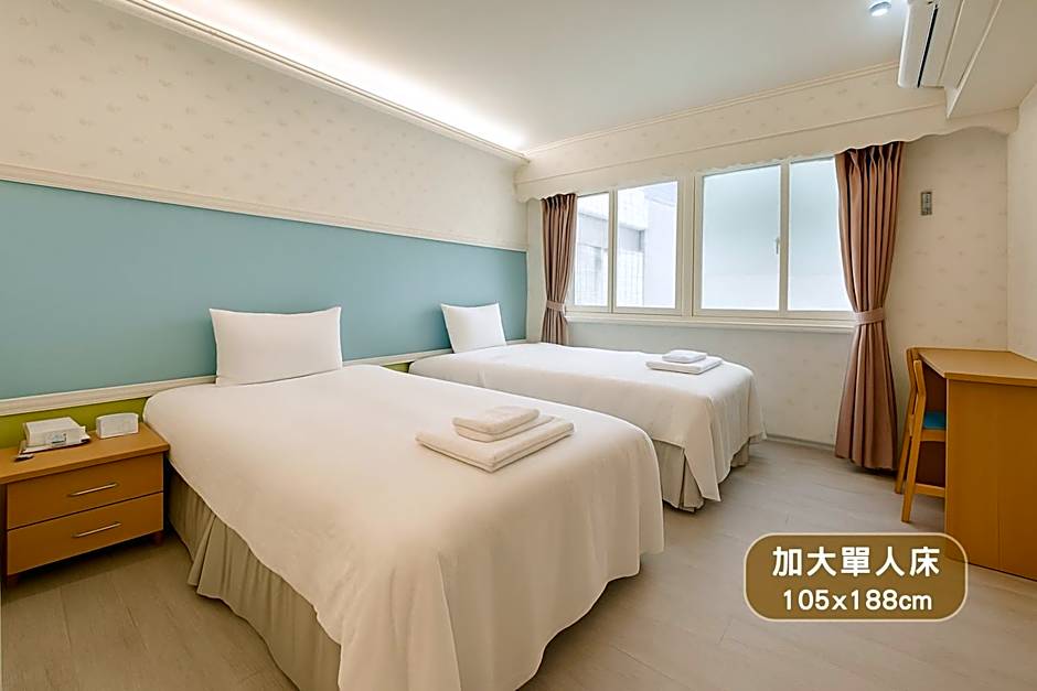 This room features 2 single beds, air conditioning, flat-screen TV, electric kettle and free bottled water.